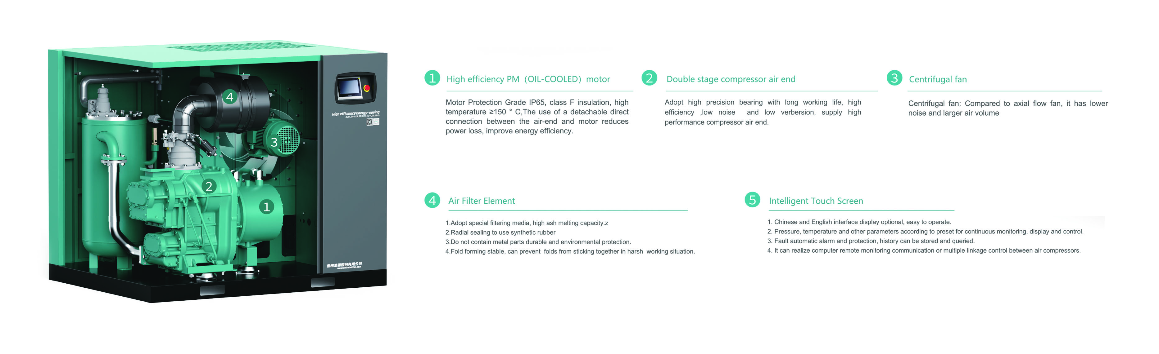 3.Motor adopt two frequency inverters, , keep energy-saving to excellent;