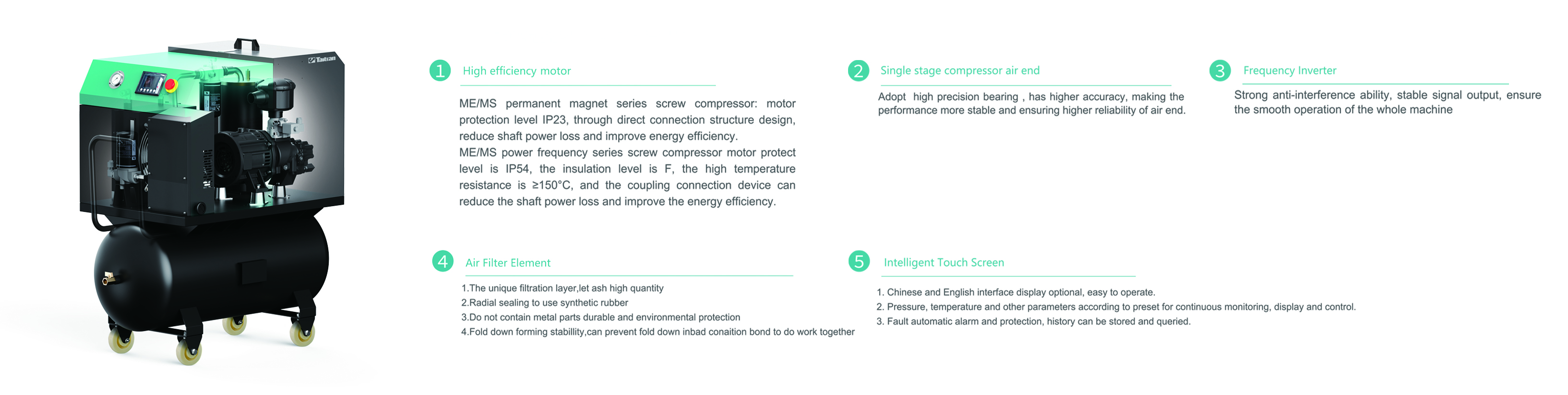 1 ) Low-cost, economical, Single stage civil screw compressor;